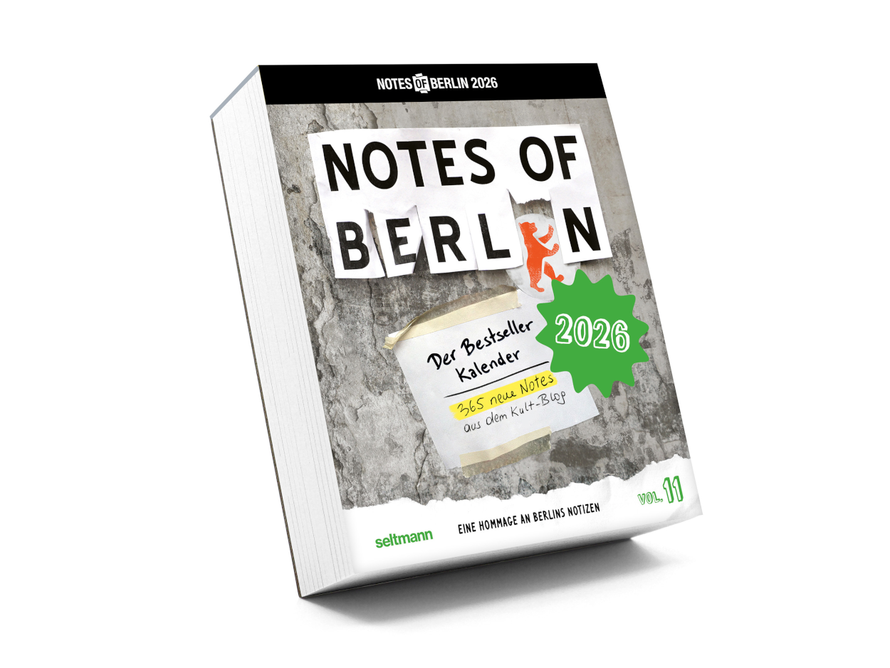 The cult calendar is back! With the Notes of Berlin 2026 tear-off calendar, you’ll bring a daily dose of Berlin street life into your home. Each page features an original note, flyer, or quirky message discovered and photographed somewhere in the German capital – sometimes hilarious, sometimes thought-provoking, sometimes wonderfully bizarre.